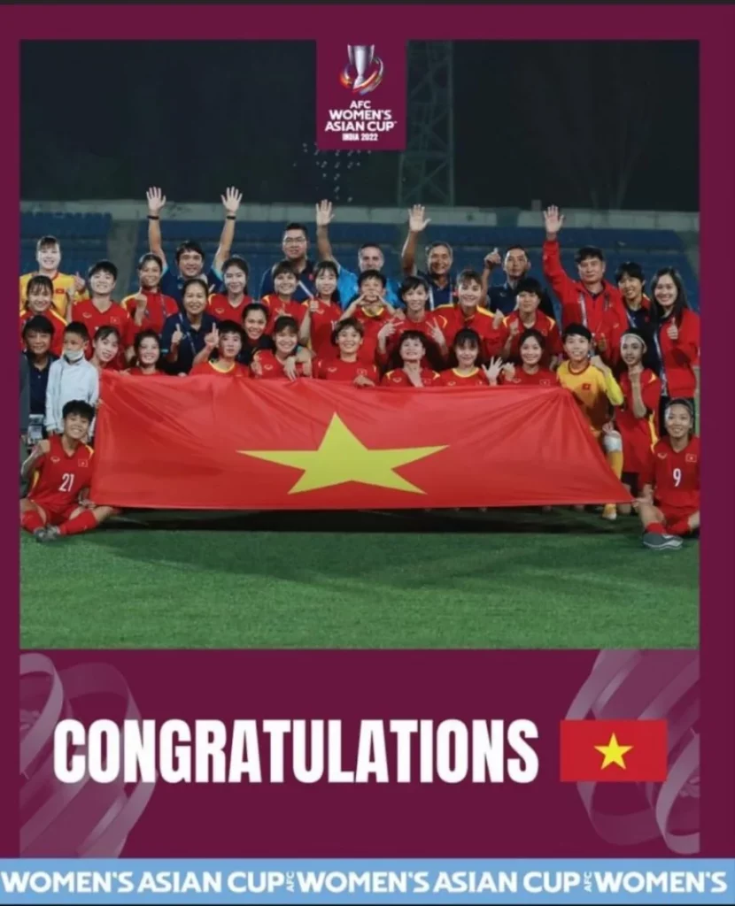Liên đoàn bóng đá Châu Á (AFC) gửi lời chúc mừng tới đội tuyển nữ Việt Nam sau khi góp mặt ở VCK Asian Cup 2022 với thành tích ấn tượng.