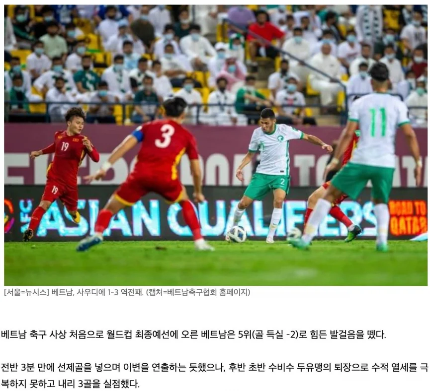 Mặc dù vậy, trong trận đấu với Ả Rập Xê Út hùng mạnh, Việt Nam đã thể hiện phong độ hơn cả mong đợi và nâng cao sự kỳ vọng của mọi người dành cho mình”.